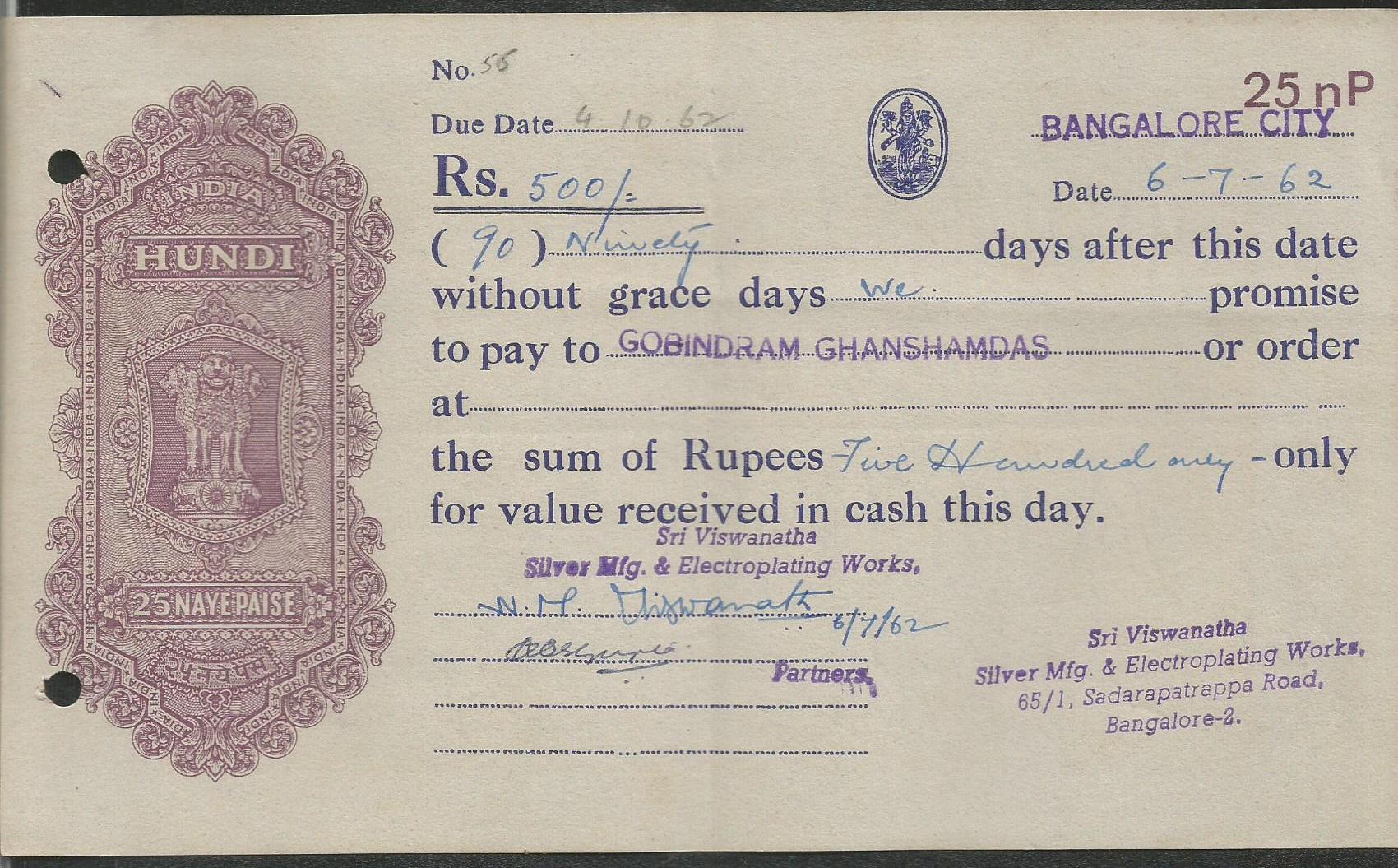 Hundi India 25 Naye Paise , Condition as per scan – Promissory note, Financial collectable Sl No 100