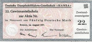 “Germany Steam ship Company Hansa 1971 Profit Share certificate 100 MarksSLCD 474” has been added to your cart. View cart