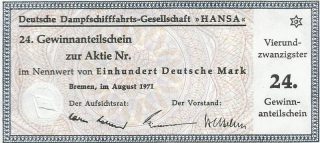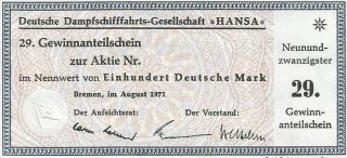 “Germany Steam ship Company Hansa 1971 Profit Share certificate 100 MarksSLCD 480” has been added to your cart. View cart