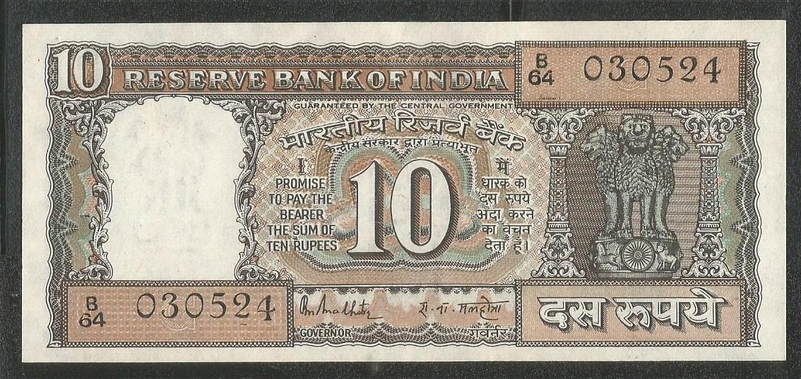 INDIA R N MALHOTRA TEN RUPEES Rs 10 NOTE GEM UNC ENDING 524
