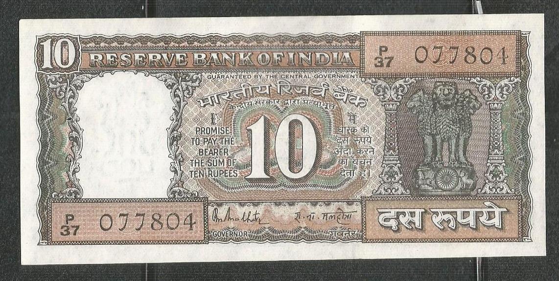 INDIA R N MALHOTRA TEN RUPEES Rs 10 NOTE GEM UNC ENDING 804