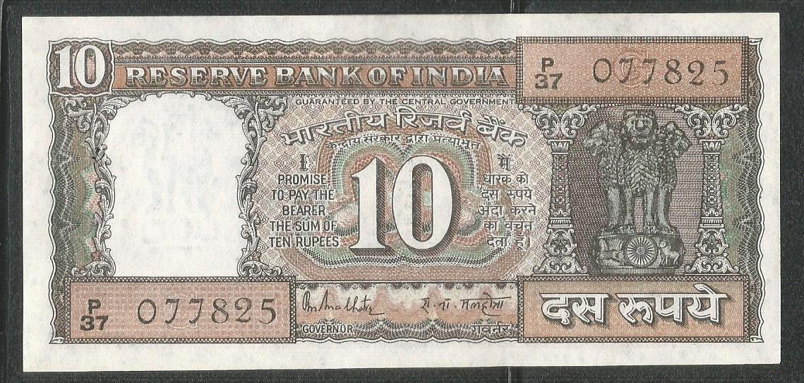 INDIA R N MALHOTRA TEN RUPEES Rs 10 NOTE GEM UNC ENDING 825