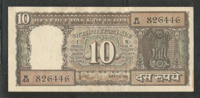 INDIA R N MALHOTRA TEN RUPEES Rs 10 NOTE UNC ENDING 446