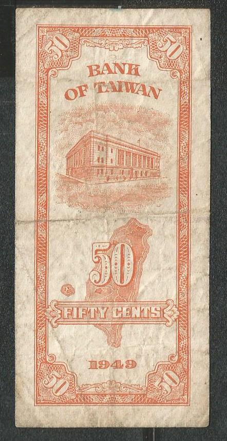 China Taiwan 1949 Small Papermoney 50 cents condition as per scan- Ref ending 75V