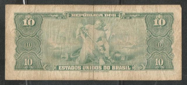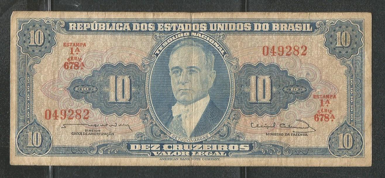 BRAZIL 1950 10 CRUZEIROS BANK NOTE PAPER MONEY BLUE – condition as per scan- Ref ending 282