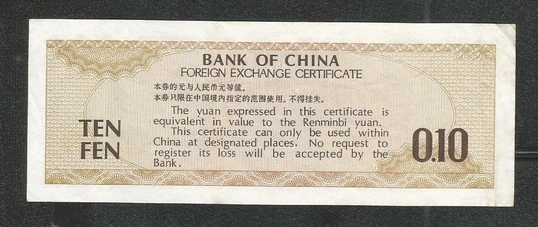 Bank of China 1979 Foreign Exchange Certificate Ten Fen- Ref ending 377