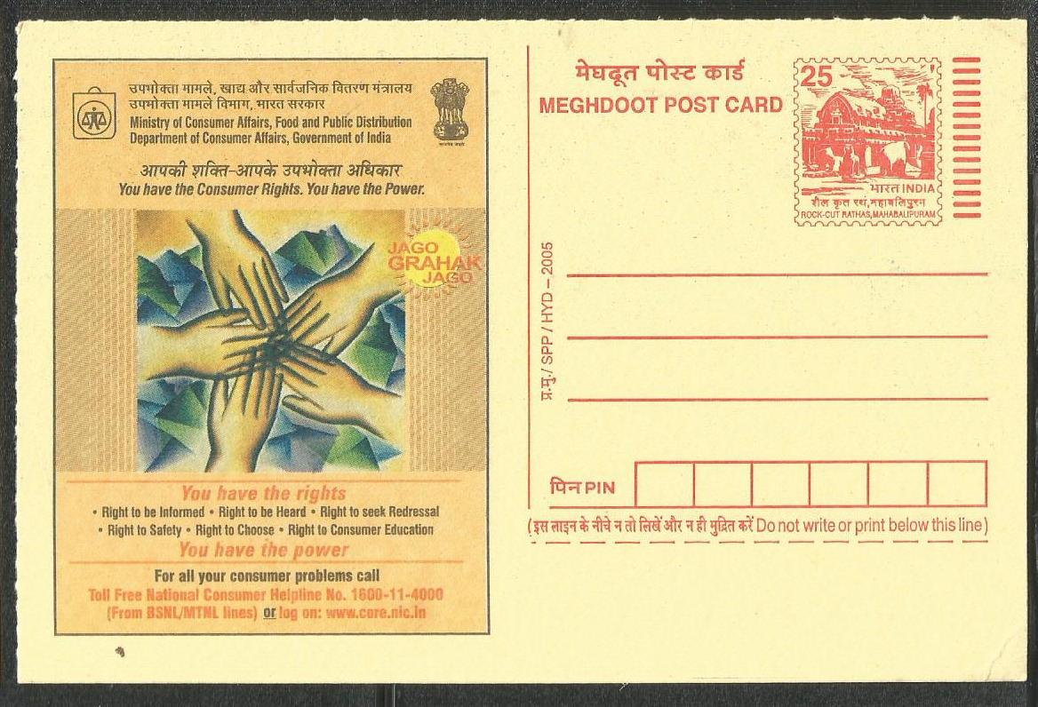 India Postal Stationary 25P Consumer Rights Mahabalipuram Mehdoot Post Card Mint