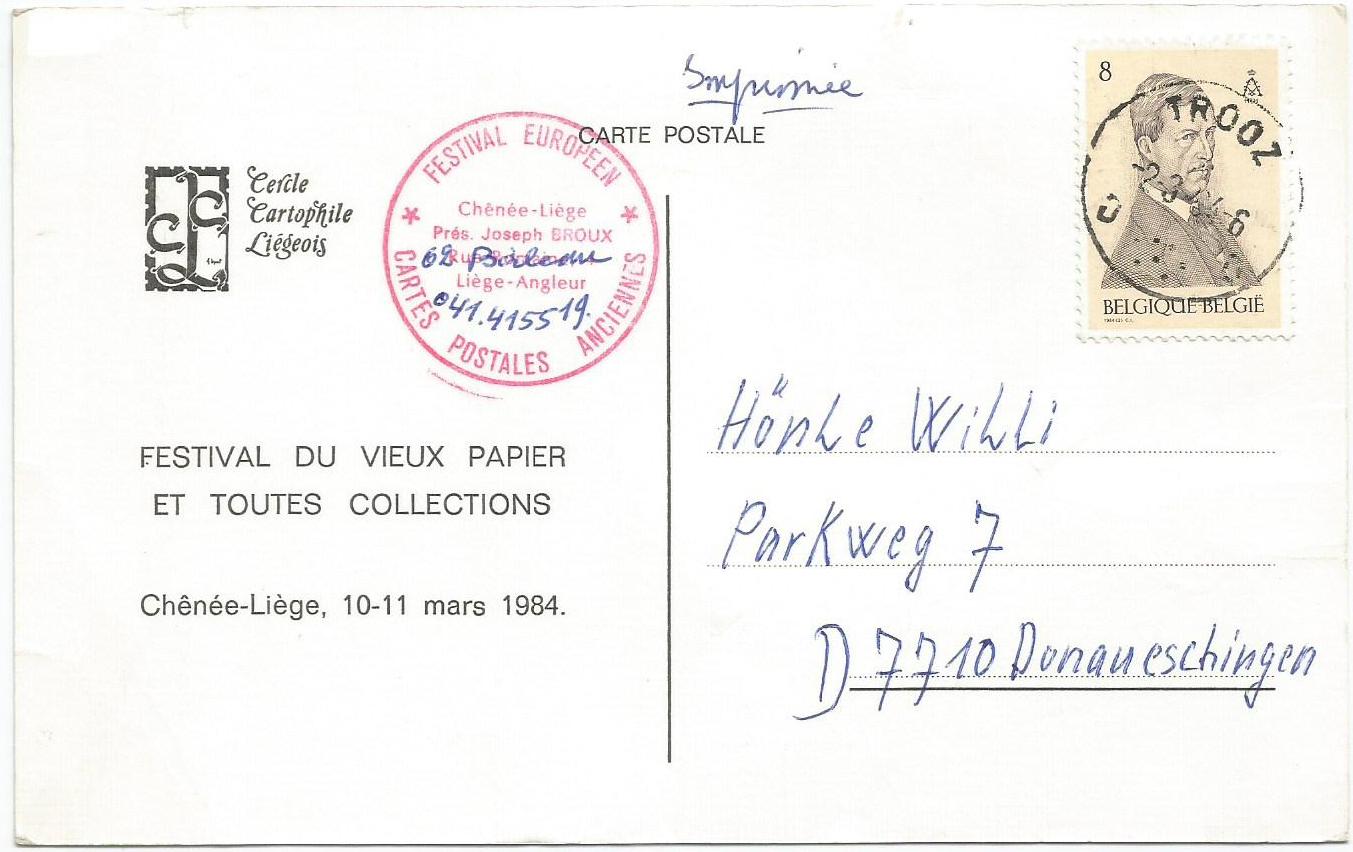 Belgium Vintage Rare surface layers form finishing post card 1984 – Old Paper Festival and collections Lady Rare!!!