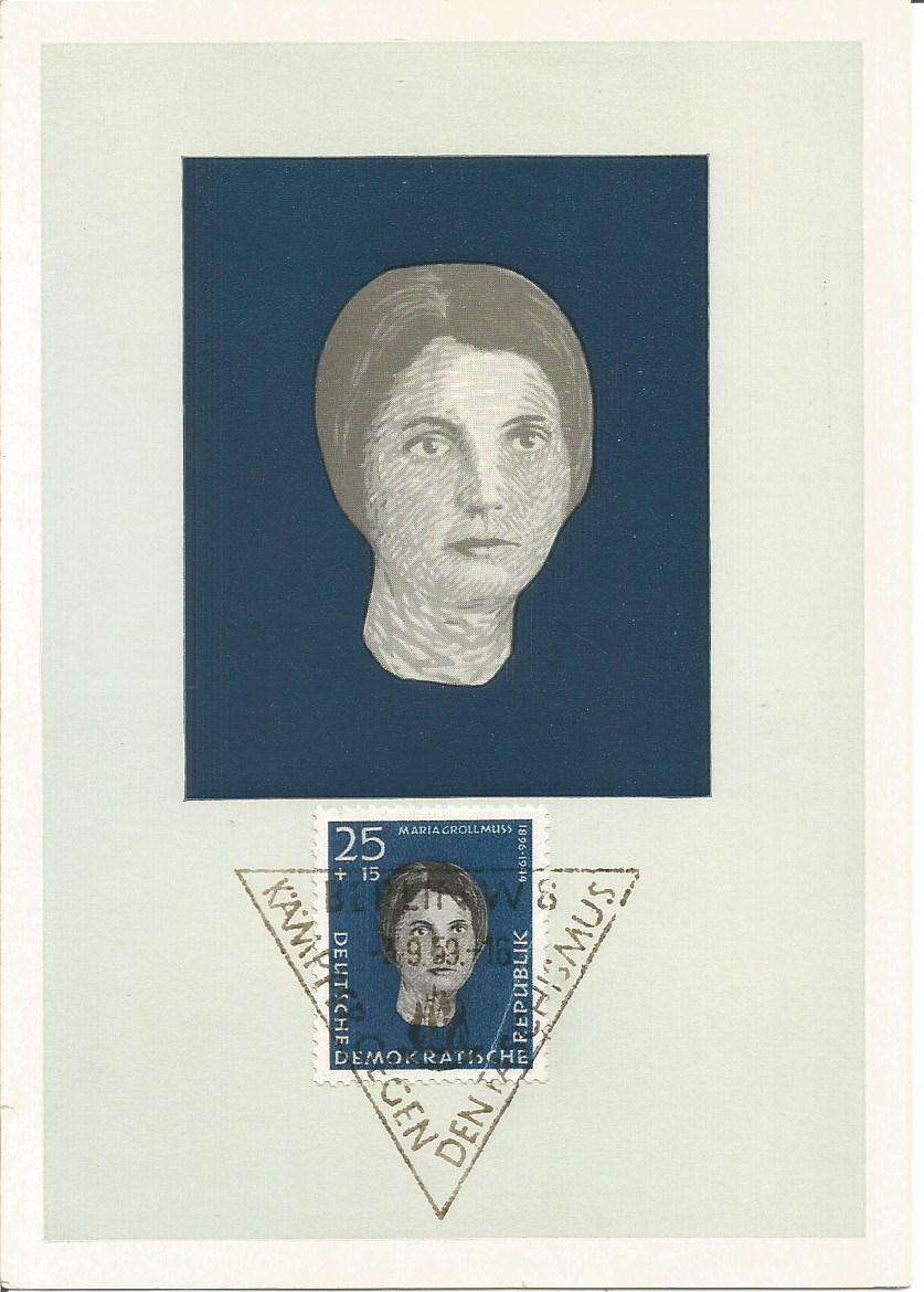 Germany Post card 1959 Portrait with stamp of Maria Grollmuss 1896 to 1944