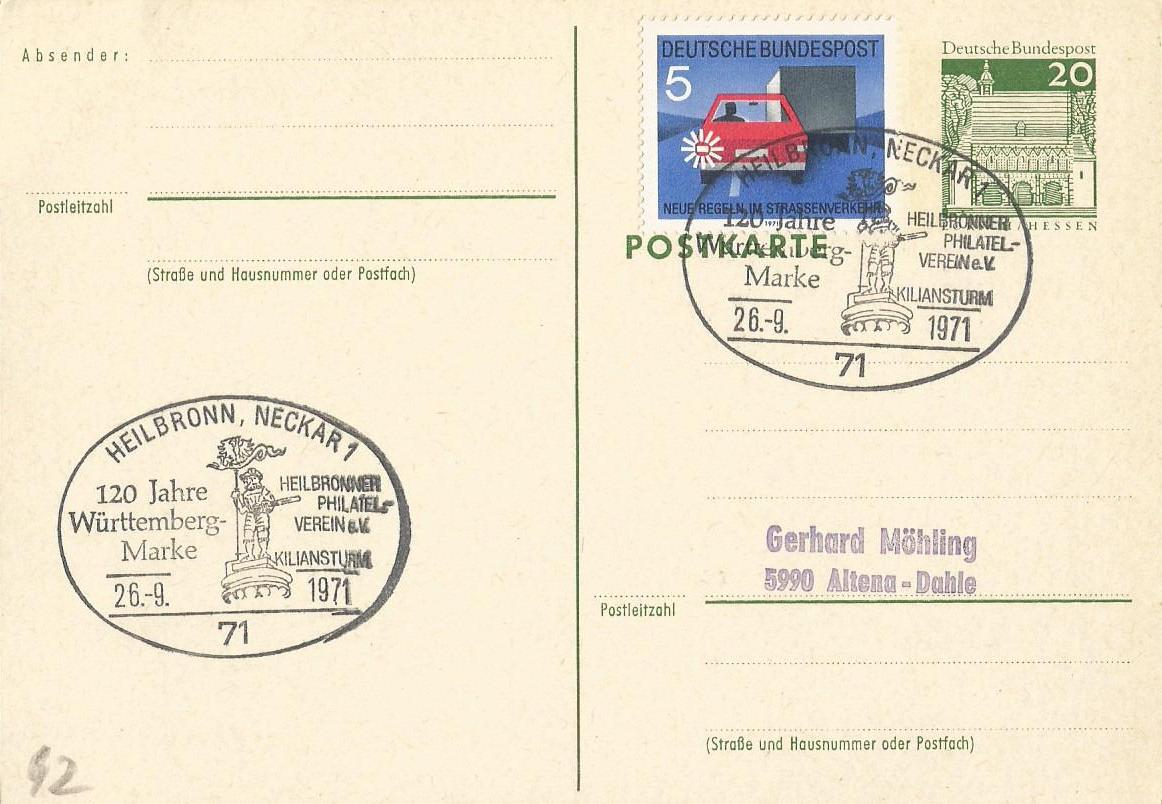 Post Card Germany 1971 Heilbrown Necker stamped unique sealing with stamp