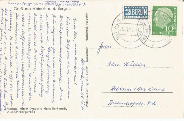 Post Card Vintage Germany Reich 1955 Postal History Hill View