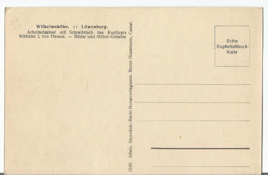 Post Card Vintage Germany Unused- Study Room view of Wilhelm Prince