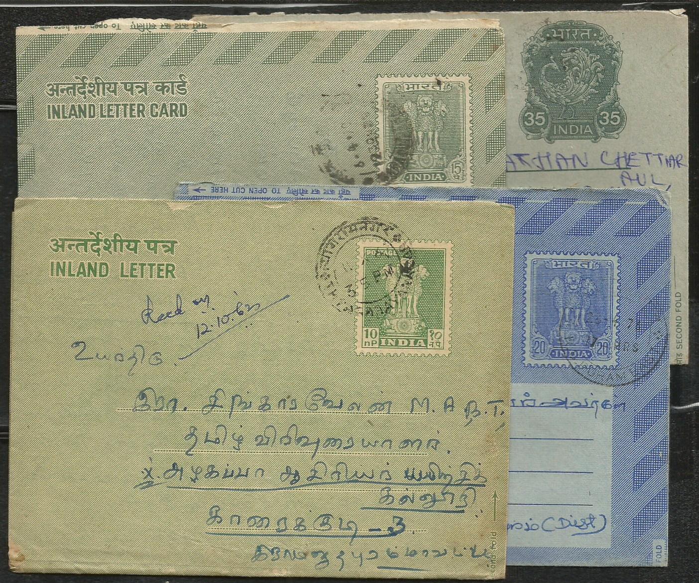 India Postal Stationary Used Set of 4 Different Inland Letters of 10, 15, 20 and 35 Paise Sl6