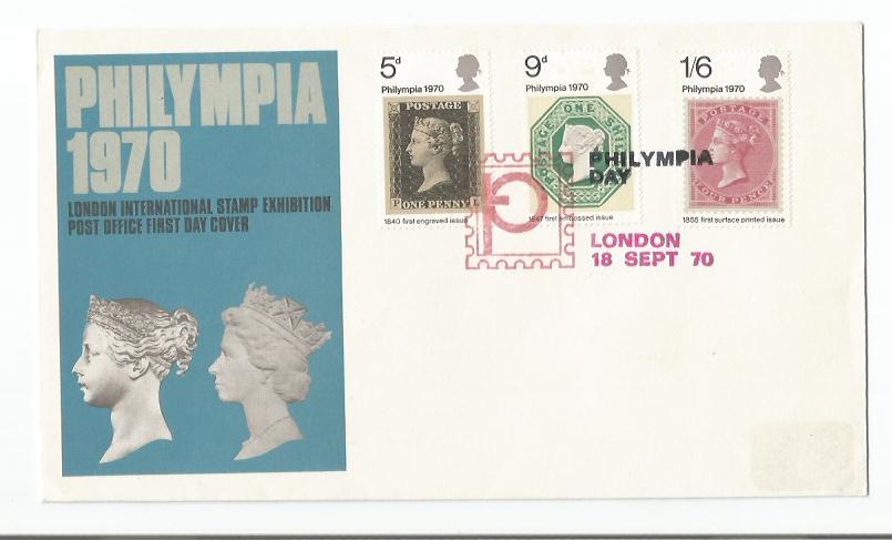 GB 1970 – PHILYMPIA LONDON INTERNATIONAL STAMP EXHIBITION COVER WITH ALL 3 STAMPS INCLUDING BLACK PENNY-4
