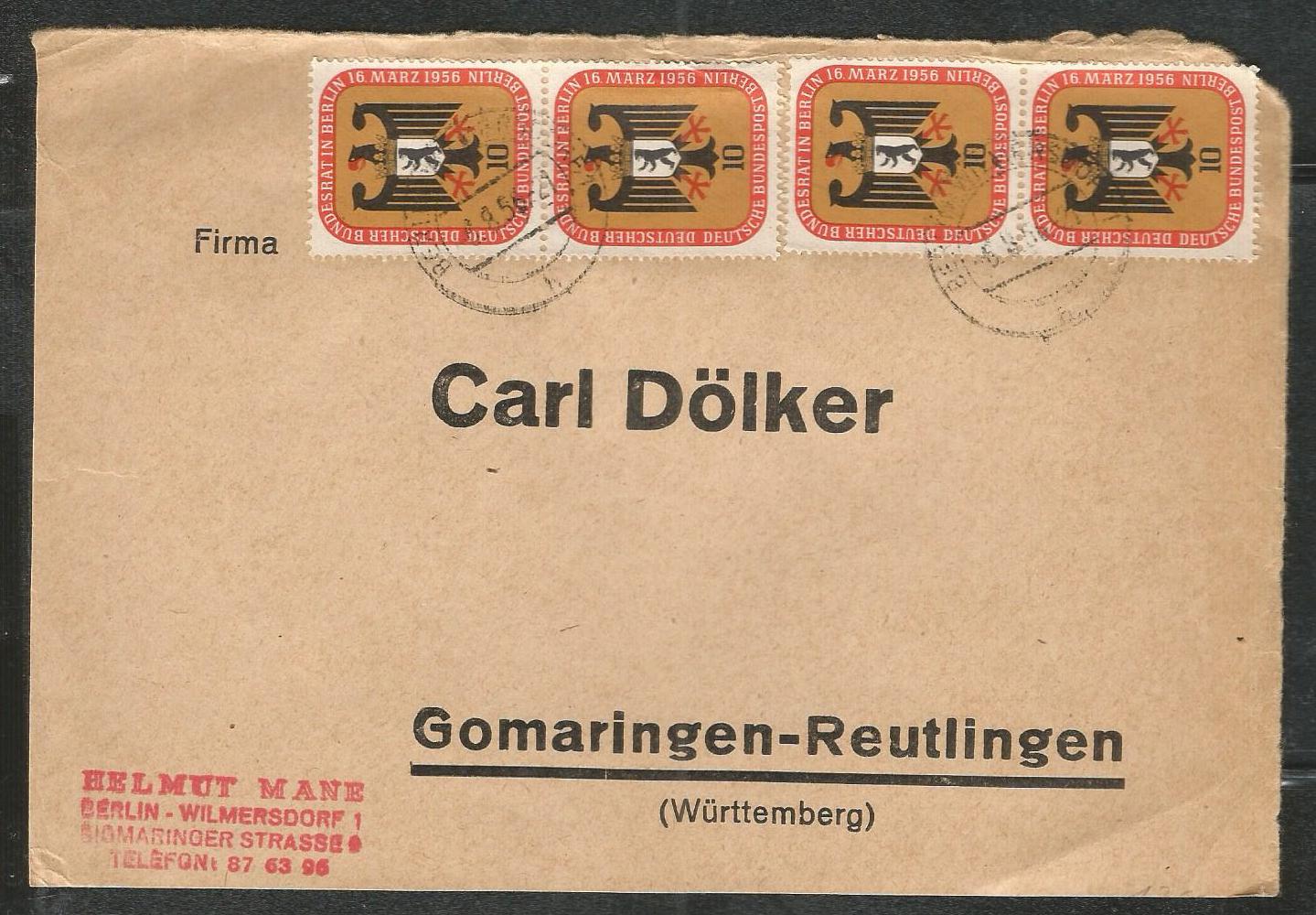 Germany 1956 Cover top only with 4 stamps