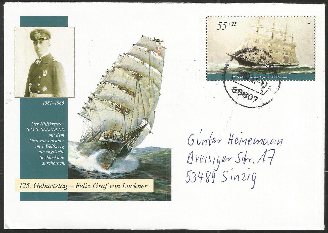 Germany 2011 Special Post Cover WW1 Naval Officer SMS Sea Eagle Felix Graf 125 th Birthady
