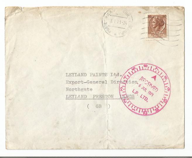 Italy to England 1971 Cover with Special Clock Type Stamping (Seal) – Rare Collectable