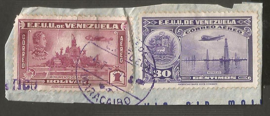 EEUU De Venezuela 1941 Boliver stamps set on post cover cutting and printed at American bank note company.-.RKA106